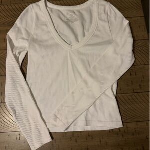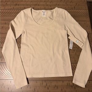 Set of three ribbed long sleeve tees. Includes green, cream, and white colors. Soft and comfortable fabric. Perfect for casual wear.