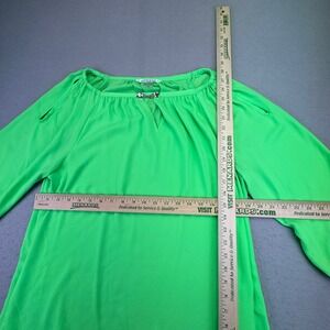 Nygard Blouse Women's Size 16 Bright Green Blouse Keyhole Neckline Chain Detail