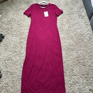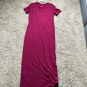 Theory, Electric Pink, Travel Short Sleeve Jersey Maxi Dress, Size S
