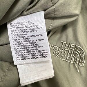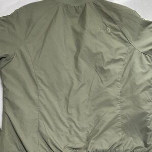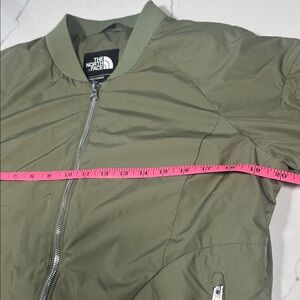 Stylish olive bomber jacket by The North Face. Features a modern design with sturdy zippers.