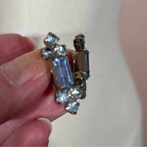 Vintage 1940’s Retro Deco Emerald cut Pale Blue Glass Silver Screw Back Earrings