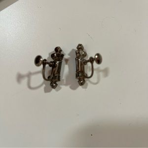 Vintage 40 50 Retro Deco Emerald cut Pale Blue Glass Silver Screw Back Earrings