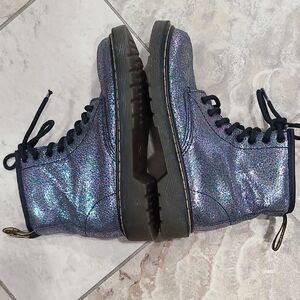 Shiny iridescent finish. Lace-up style. Perfect for any adventure.