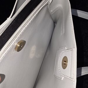 Chic and versatile white crossbody bag with gold accents. Perfect for any occasion.