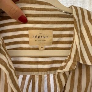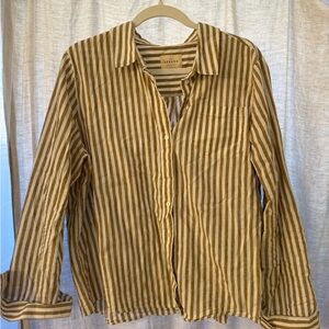 Linen and cotton blend striped button-up shirt. Features a classic collar and long sleeves. Size 44 EU