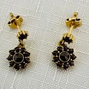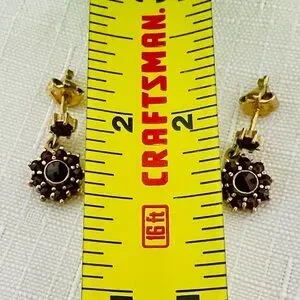Beautifully Made / Yellow gold stud with garnet and dangle flower with 10 garnets ( 1~large stone in the middle and 9~smaller stones in the shape of a flower ) all gold and garnets. Beautiful push backings kind of shaped like a tulip.