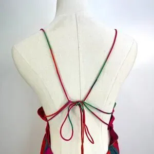 Preowned item in excellent overall condition. No odors, stains, or holes. Comfy, flowy, and airy beautiful fabric. Unlined with no pockets. Open back with thin ties. Asymmetrical handkerchief hemline. Cut out on the front.