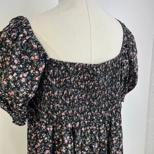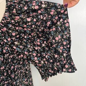 The Garden Song Bunny Romper combines comfort and whimsy, featuring a playful ditsy dark floral pattern that’s perfect for sunny days. With its flattering silhouette and lightweight fabric, this romper is ideal for casual outings or garden parties. The accommodating elastic smocking on the bust ensures a perfect fit, while the puff sleeves give a feminine vibe. Effortlessly stylish, this garment pairs well with sandals or sneakers, making it a versatile addition to any wardrobe. Unlined with side pockets. New with tags, unused, no flaws or odors.