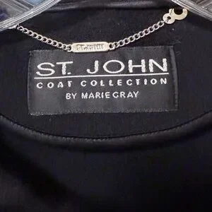 Chic and sophisticated St. John poncho with luxurious fur accents. Perfect for adding elegance to any outfit.