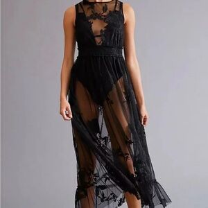 Chic black lace top dress with intricate detailing. Smoke and Pet Free. Originally $200
