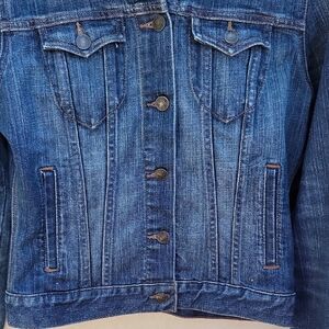 Timeless indigo denim jacket. Button-up front with chest pockets. Perfect for everyday style.