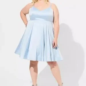 Torrid Mini Satin Skater Dress In "Skyway" Blue- NWT- Size 24