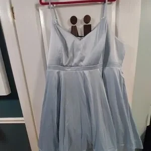 Torrid's Mini Satin Skater Dress in Skyway Blue, which is the most Cinderella blue I've ever seen in my life. Has netting underneath the skirt to give it that *poof.*