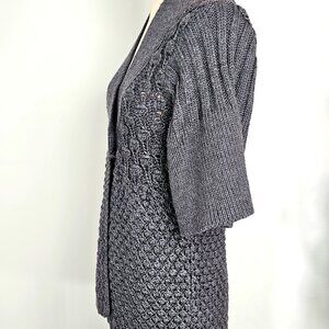 U Knits Charcoal Gray Double-Button Pointelle Knit Sweater – Size M