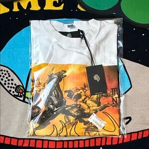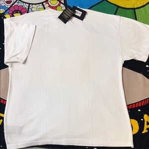 White short sleeve tee with dynamic orange graphic. Perfect for casual wear.