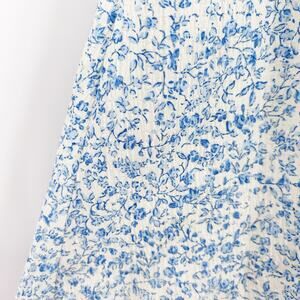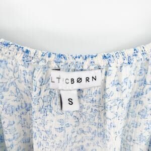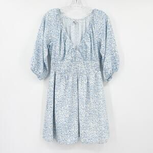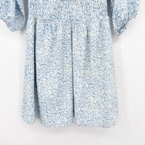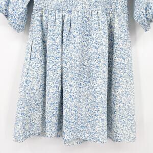 Baltic Born Koa Short Dress Blue Cream Ditsy Floral Smocked Waist Womens Sz S