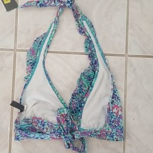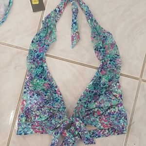 Colorful halter bikini the top is xl, no padding but both bottoms are size medium