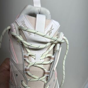 Experience the perfect blend of style and comfort with Reebok's Pink and White Chunky Sneakers. These sneakers boast a trendy, bulky silhouette with a thick sole and layered upper design, making them ideal for casual outings. The clean and minimalist aesthetic ensures they pair effortlessly with any outfit. See all photos they are part of description