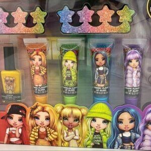 Rainbow High Beauty Set. New. Includes 4 flavored lip glosses, 2 scented nail polish, and two toe separators. Please see photos for more details.
