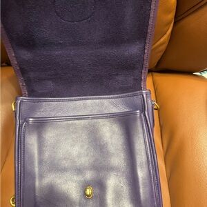 Coach vintage station bag in purple is extremely rare and hard to find. Made in the USA in the early 1980s. Includes original hangtag, detachable straps with brass lobster claw clasps. Bag has turnlock closure. Raw leather interior. Beautiful and very unique. Stored in unbranded dustbag. Comes from smoke free home.