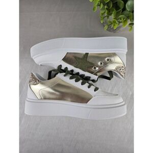 VH by Vintage Havana White Gold Star Platform Sneakers Lace Up Women's Size 8