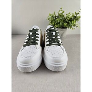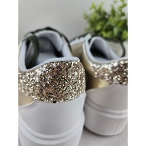Elevate your everyday style with these eye-catching VH by Vintage Havana platform sneakers. Glistening gold accents and a bold green star appliqué add a touch of playful sophistication to any outfit, while the comfortable white leather and platform sole ensure all-day wearability. The sparkling glitter heel detail adds a glamorous finish, making these shoes perfect for a casual brunch, a fun night out, or adding a chic touch to your weekend wardrobe.