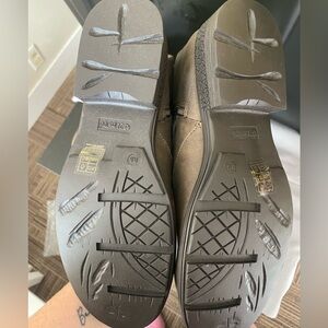 Sleek brown mid calf zip up boots with stylish buckle accents. Perfect for adding flair to any outfit. Man made material. Matte leather look. Heel approx 1". Zipper entry. New in box. Women's 8.5.