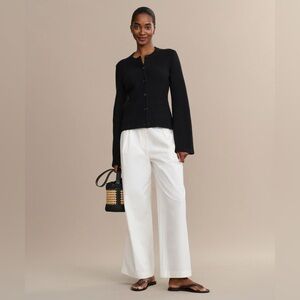 Featuring a structured silhouette that nips in at the waist and a very slight bell sleeve that instantly elevates any ensemble, this iconic cardigan effortlessly holds its own in any wardrobe. The fitted body enables versatile styling: wear it open like a blazer with a t-shirt underneath or buttoned up as a pullover.
