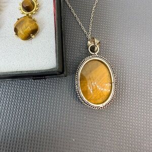 This elegant jewelry set features a stunning gold and silver design, perfect for any occasion. The set includes a pendant necklace and matching earrings, crafted with exquisite attention to detail.