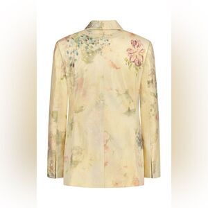 First, the jacket's watercolor inspired wildflower motif is printed and foiled in roll form, then washed in panel form before carefully being crafted.