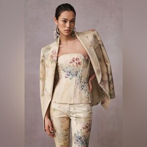 Next, once assembled, master artisans meticulously hand-paint a series of florals on top of the jacket's print, giving this beautiful style rich texture and dimension.