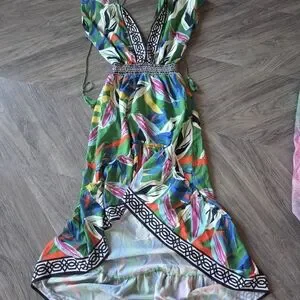 Super cute high/low. Chic dress with green and white hues. Soft fabric blend for comfort. Worn once.
