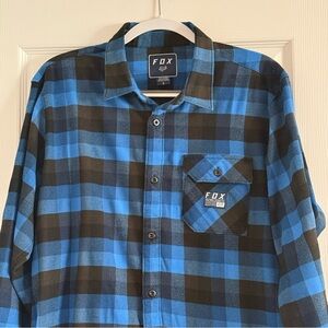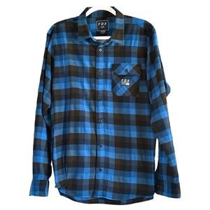 Fox Racing Blue and Black Plaid Men's Flannel Shirt Large