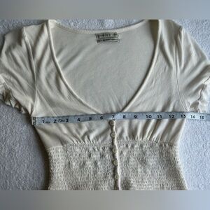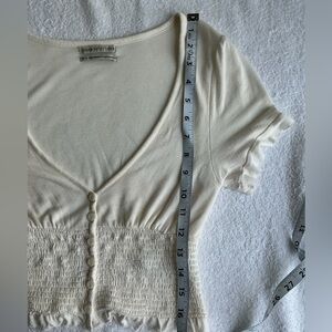 Urban Outfitters Cream Button-Up Smocked Crop Top