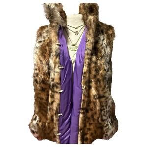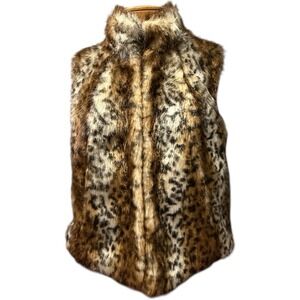 Peter Nygard Multi Brown Faux Fur Leopard Print Vest Size Large