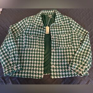Green and White Houndstooth Jacket Jodifl