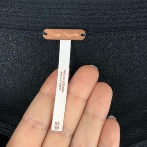 Free People Criss Cross V Neck Sweater Tunic Top Linen Blend Boho Black XS