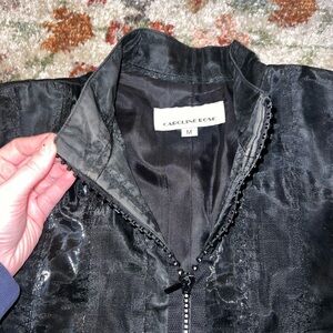 Caroline Rose Black Textured Jacket with Rhinestone Zipper