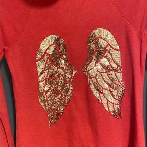 Vintage Victoria's Secret Red Hoodie with Gold Angel Wings