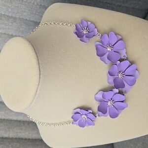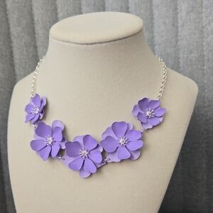 Elegant purple floral necklace perfect for any occasion. Add a touch of charm to your outfit with this stunning piece.