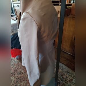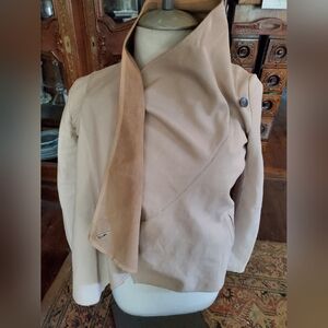 Sophisticated unlined leather jacket. Features a unique waterfall button closure.