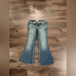 Hollister low rise flare jeans with embroidered belt.