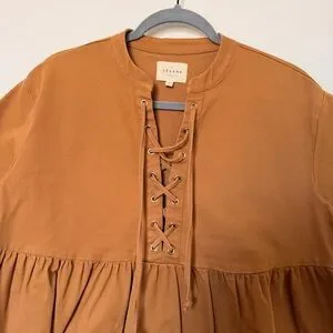 Elevate your everyday style with the Sézane Theodora Dress. Crafted in a timeless camel brown denim, this dress exudes effortless sophistication. Featuring lace-up detailing at the top, it adds a touch of charm to any look. Embrace classic elegance with a modern twist.
