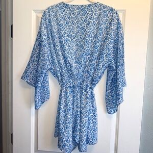 Pink Lily Romper Shorts Wrap Style Belted Vacation Spring break Blue white Sz M
