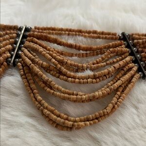 Vintage Beaded Wood Elegant Brown Choker Necklace