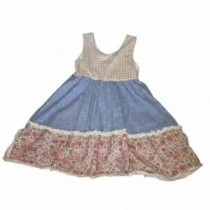 Sweet Honey Sleeveless Dress V Back Floral Polka Dots Circle 10Y