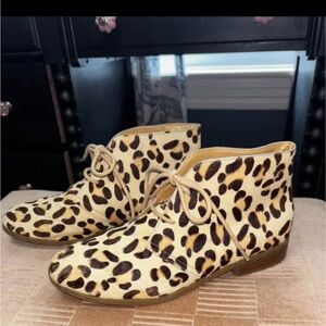 Chic animal print boots with lace-up design. Ideal for a trendy look.