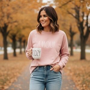RAE DUNN Amour Pink Raglan Sweatshirt Large Soft Hi-Lo Hem Loungewear NEW