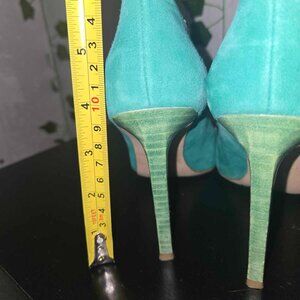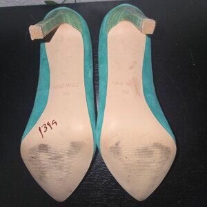 Nine West Teal Suede Leather High Heels Size 6M Pointed Toe Classic Dress Pumps