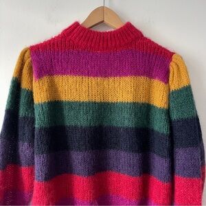 FARM Rio Striped Mohair-Merino Sweater — Size L / Large / Colourful Crewneck